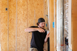Selv små utætheder kan føre til, at varm, fugtig luft trænger ud og kondenserer i væggen. Brug derfor dampspærretape og manchetter, og kontroller arbejdet grundigt, inden væggen lukkes.